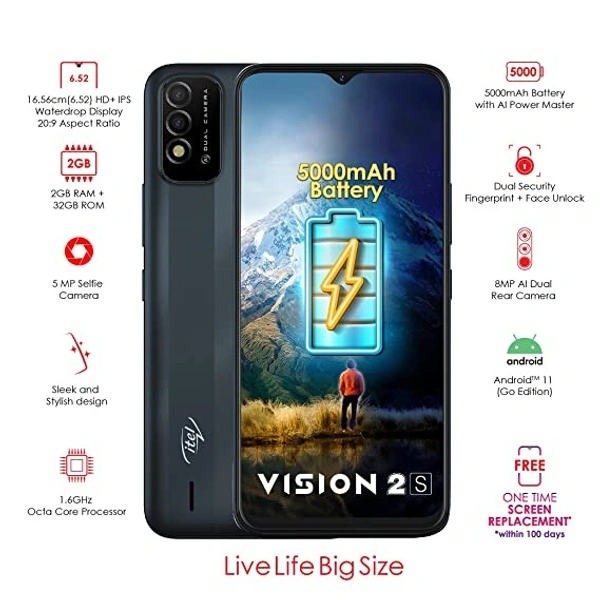 itel Vision2S (Deep Blue, 6.52'' HD+, 5000mAh Battery, 2GB RAM 32GB ROM, 8MP AI Dual Camera) (P651L)